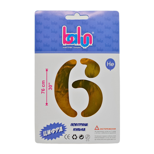 Кулька фольга цифра “6” золото 76см