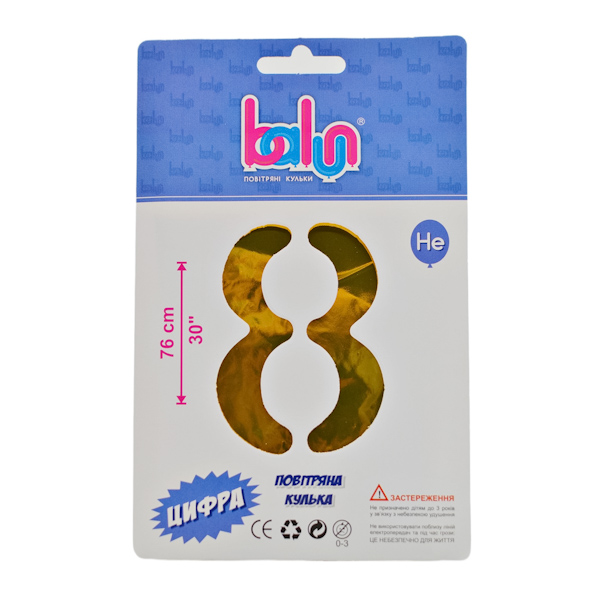 Кулька фольга цифра “8” золото 76см