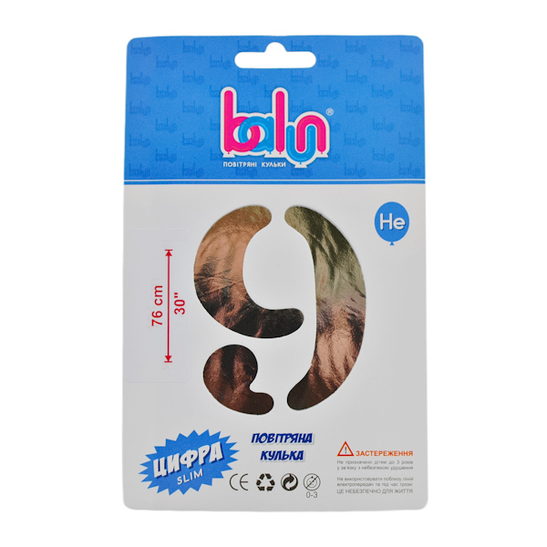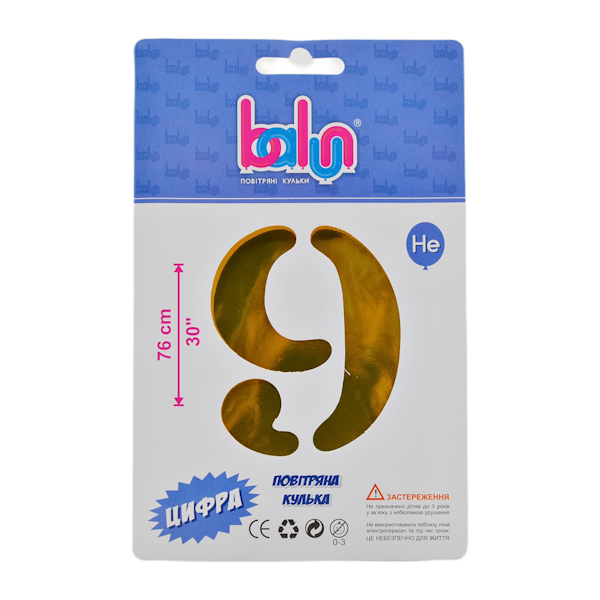 Кулька фольга цифра “9” золото 76см