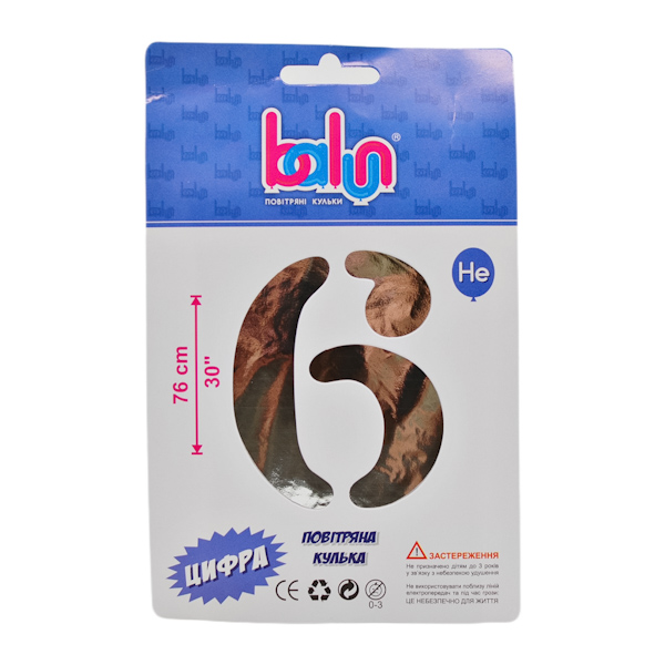 Кулька фольга цифра “6” срібна 76см