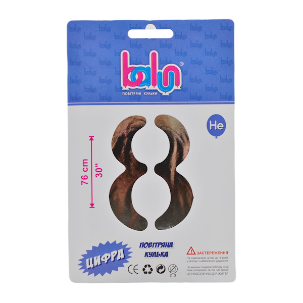 Кулька фольга цифра “8” срібна 76см